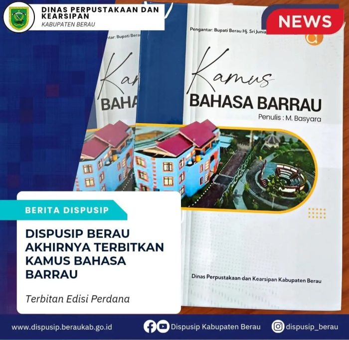 DESKRIPSI.ID – BERAU – Dinas Perpustakaan dan Kearsipan (Dispusip) Berau terbitkan kamus bahasa Berau edisi pertama. Kamus bahasa Barrau (Banua), itu ditulis oleh almarhum Muhammad Basyara, seorang budayawan asli Kabupaten Berau.